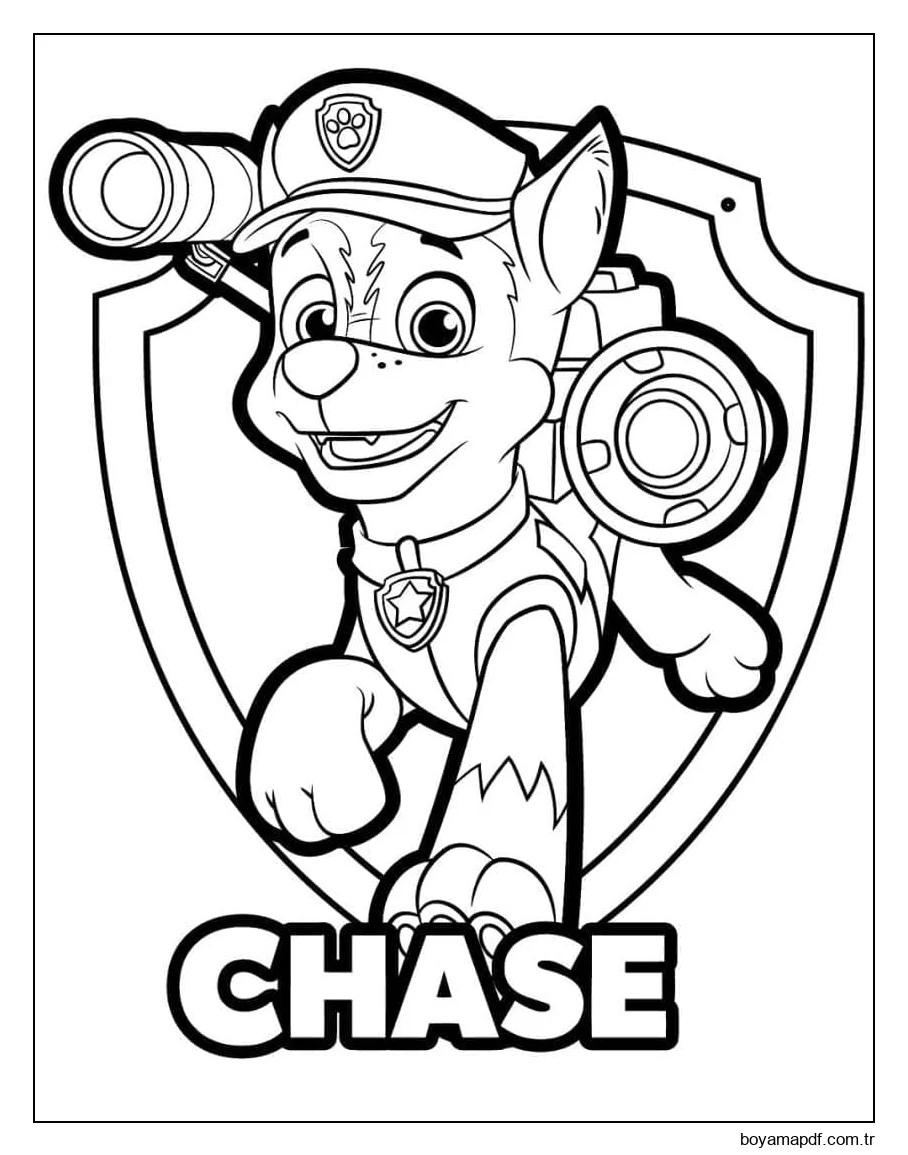 Aynı temaya sahip daha fazla boyama sayfasını görüntülemek için yan alandaki önerileri veya Chase Paw Patrol kategorisini inceleyebilirsiniz.