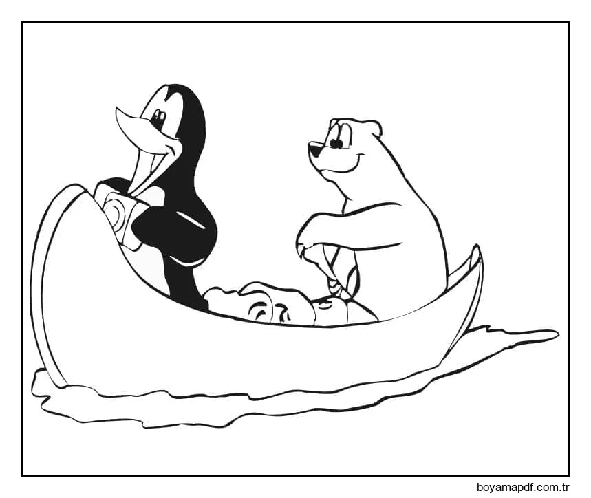 Penguen ve Kutup Ayısı Teknede Boyama Sayfası