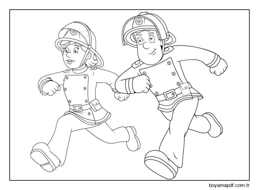 Penny ve İtfaiyeci Sam Koşuyor Boyama Sayfası