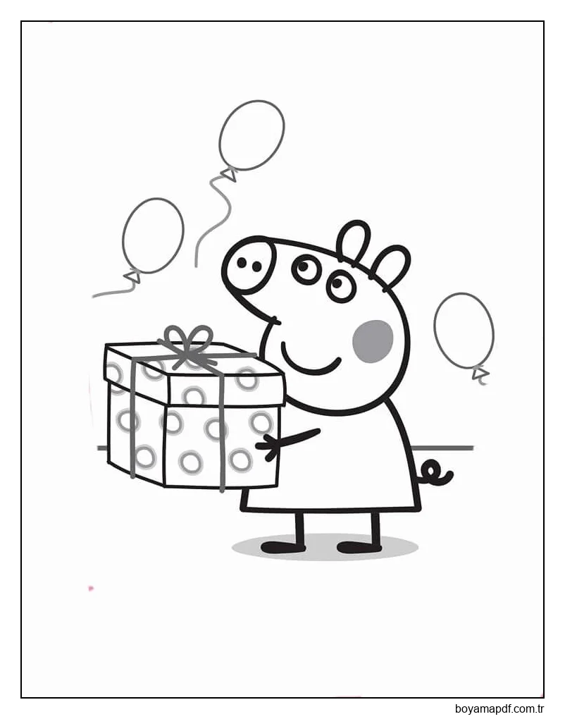 Peppa Domuz Ve Hediye Boyama Sayfası