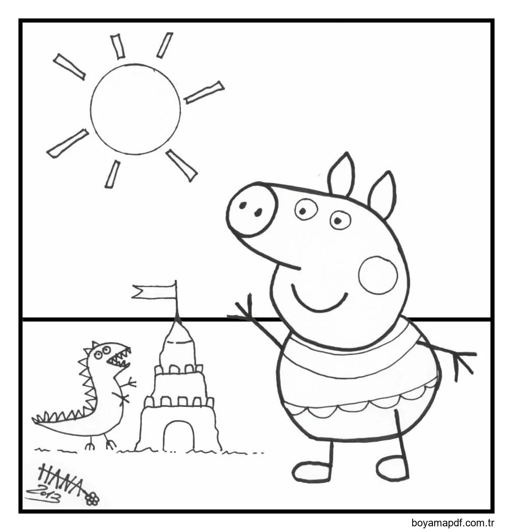Peppa Domuz ve Kumdan Kale Boyama Sayfası