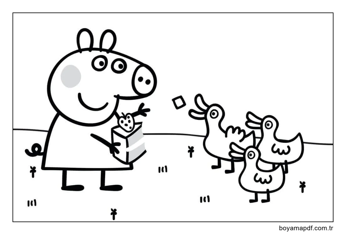 Peppa Domuz ve Ördekler Boyama Sayfası