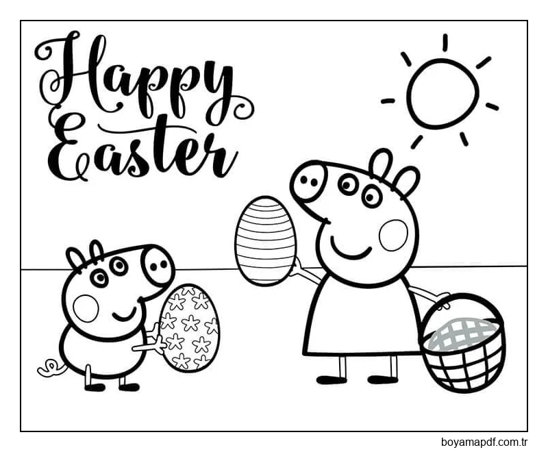 Peppa Domuz ve Paskalya Yumurtaları Boyama Sayfası