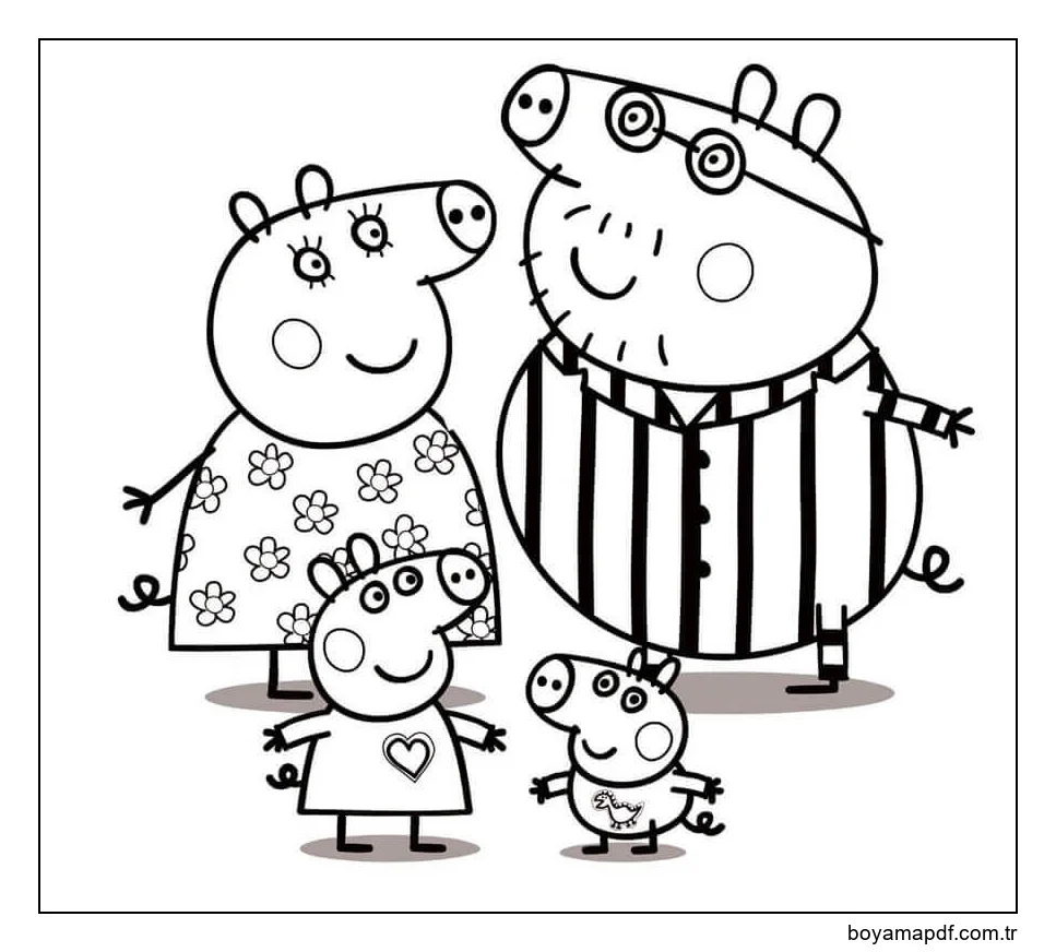 Pijamalı Peppa Pig Ailesi Boyama Sayfası