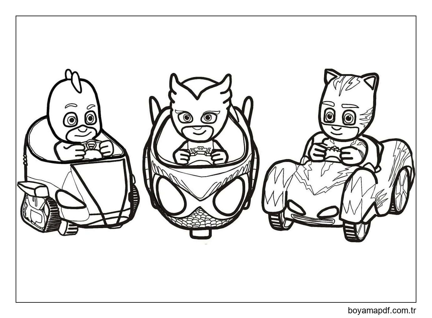 Pijamaskeliler Araba Sürmek Boyama Sayfası