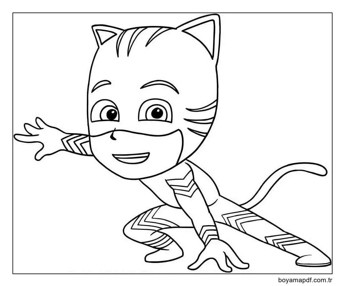 Pijamaskeliler giyen kedi çocuk çok havalı Boyama Sayfası