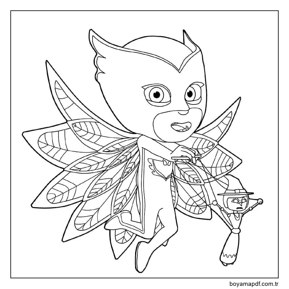 Pijamaskeliler sevimli baykuş çocuk Boyama Sayfası