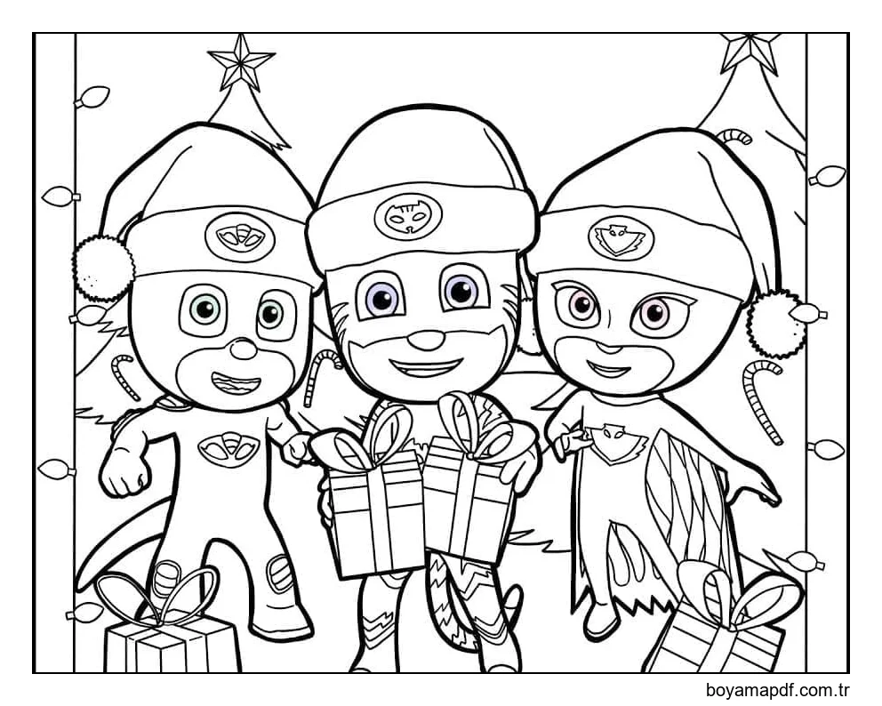 PJ Maskeler Noel pijamaskeliler Boyama Sayfası