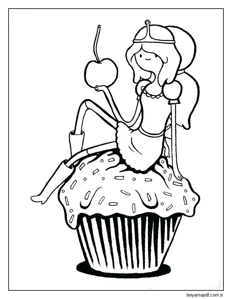 Prenses Sakız Ve Büyük Kek Boyama Sayfası