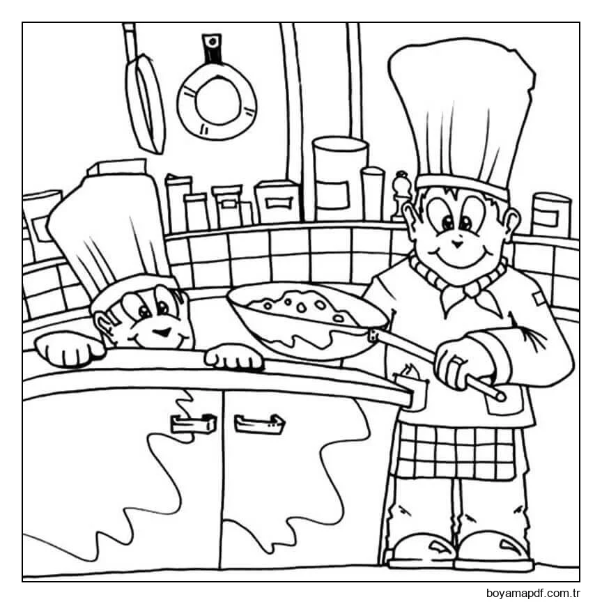 Aynı temaya sahip daha fazla boyama sayfasını görüntülemek için yan alandaki önerileri veya Sef kategorisini inceleyebilirsiniz.