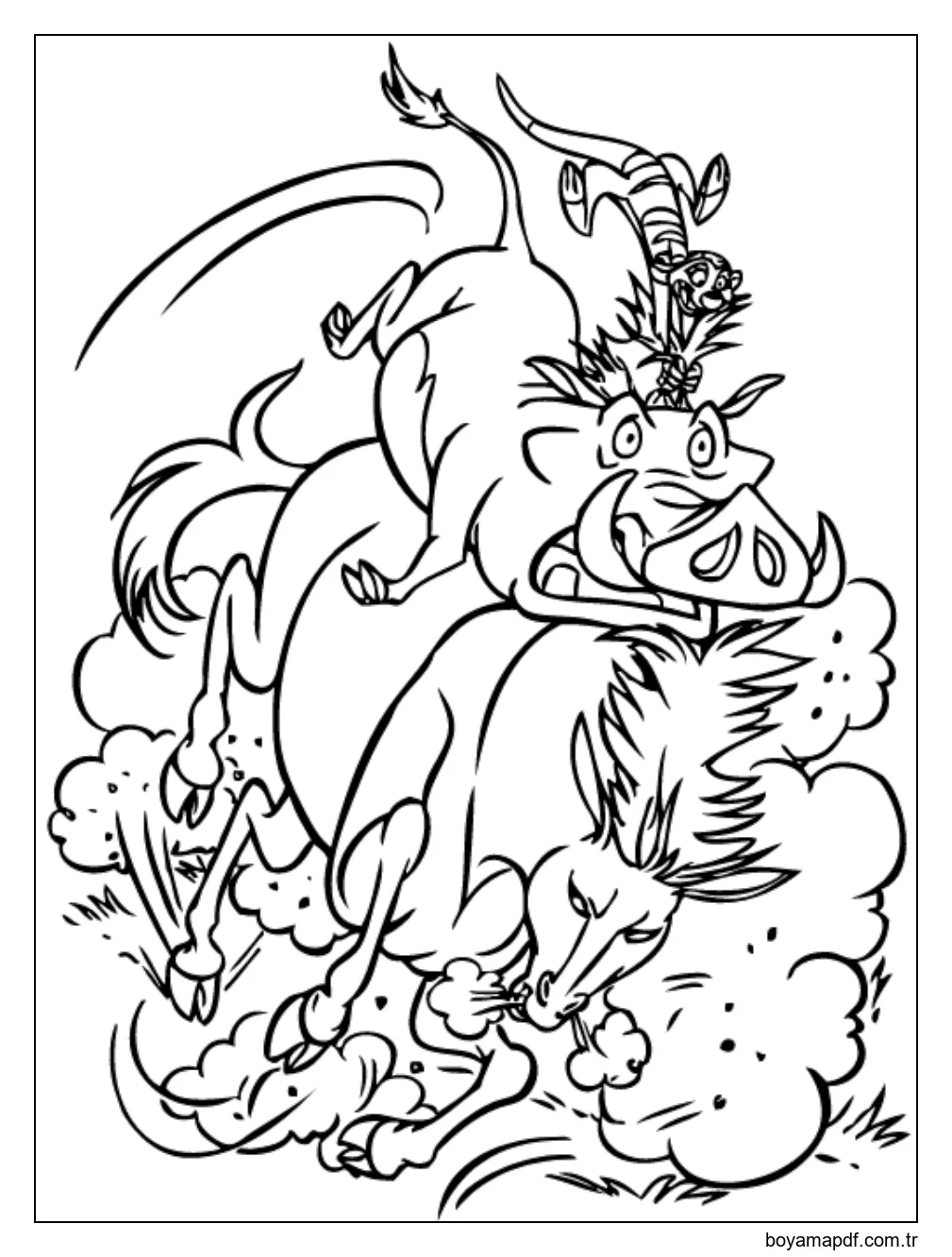 Pumbaa ve Timon Ata Biniyor Boyama Sayfası