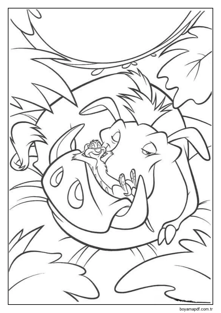 Pumbaa ve Timon Uyumak Boyama Sayfası