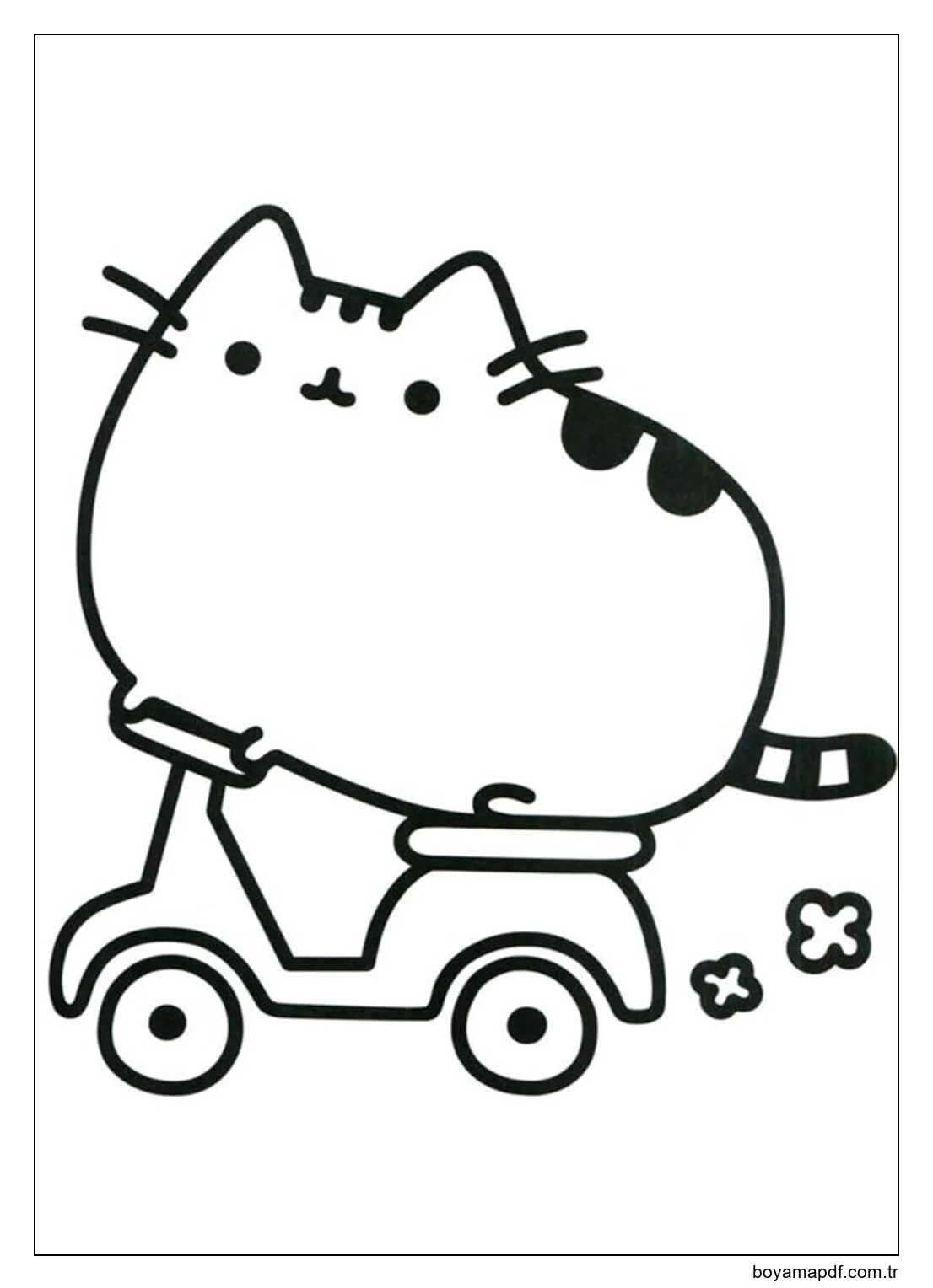 Pusheen Motosiklet Sürüyor Boyama Sayfası