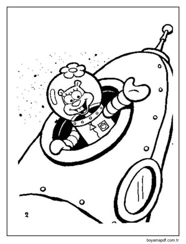 Rocket'te Sandy Cheeks Çizimi Boyama Sayfası