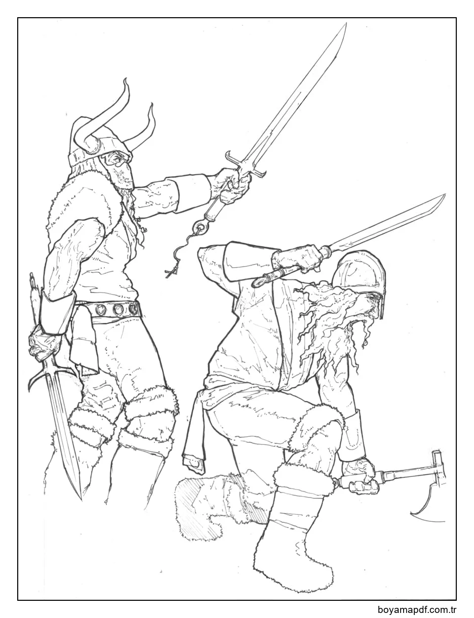 Aynı temaya sahip daha fazla boyama sayfasını görüntülemek için yan alandaki önerileri veya Vikingler kategorisini inceleyebilirsiniz.