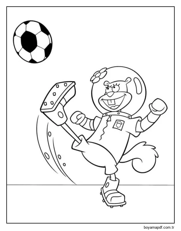 Sandy Cheeks Futbol Oynuyor Boyama Sayfası