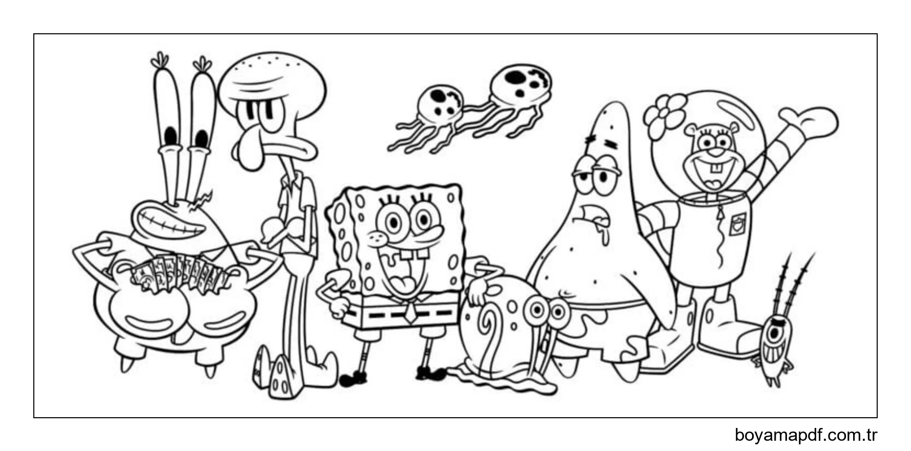 Sandy Cheeks ve Arkadaşlar Boyama Sayfası