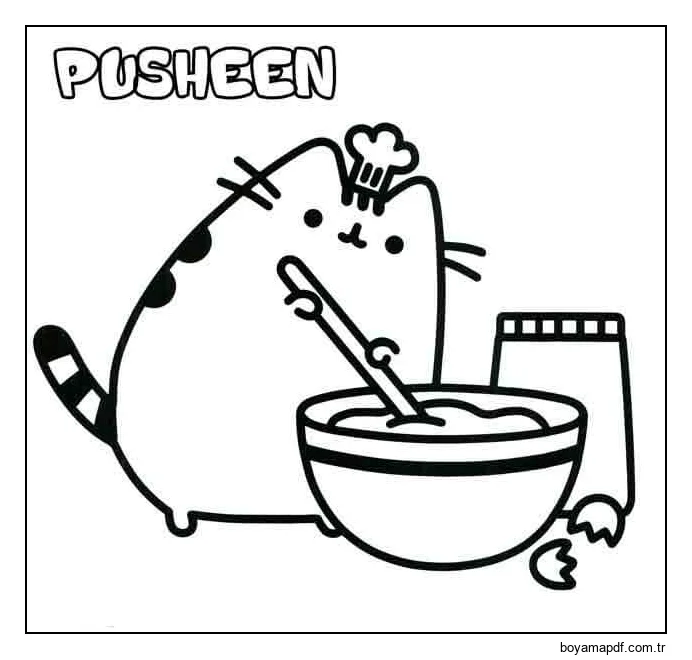 Şef Pusheen Turta Yapar Boyama Sayfası