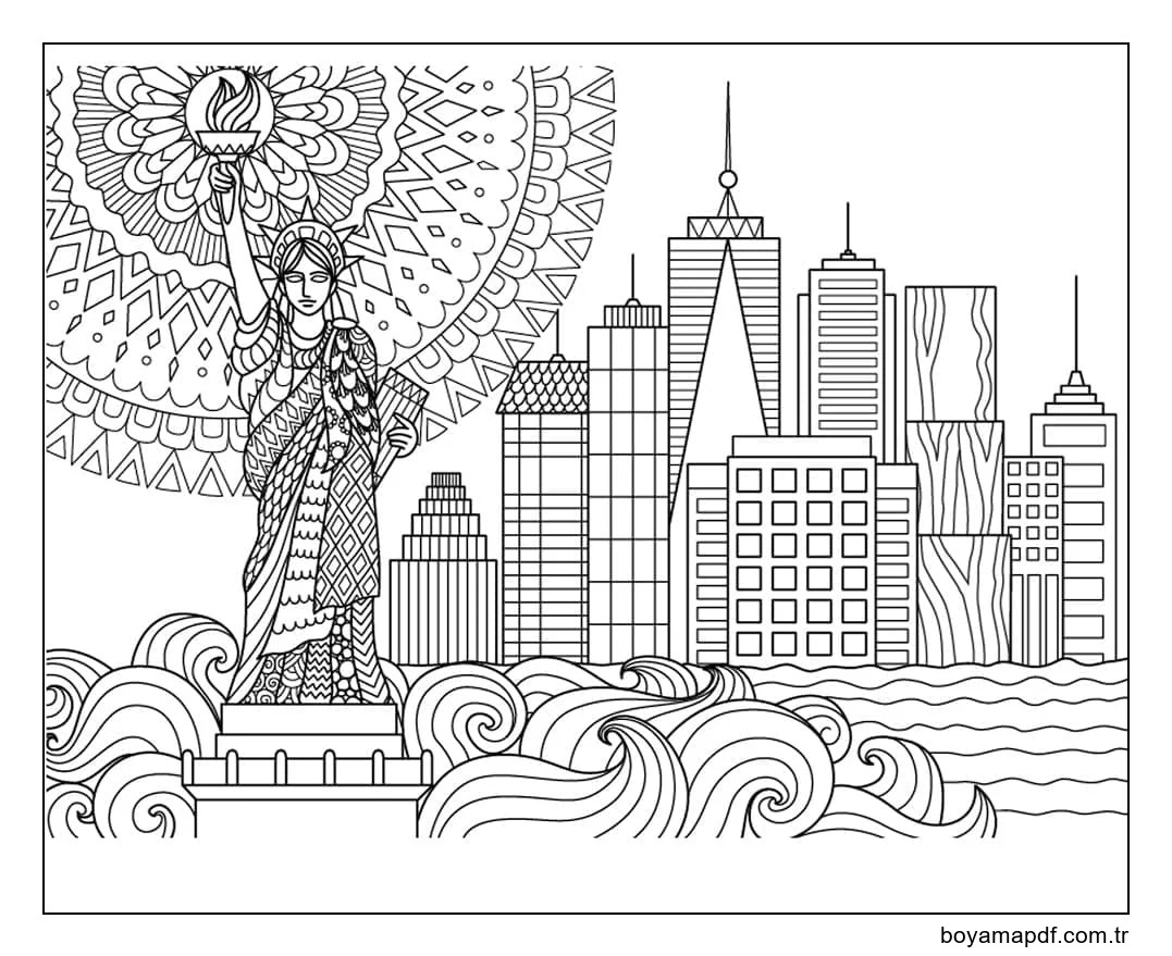 Şehir New York Ücretsiz yazdırılabilir Boyama Sayfası