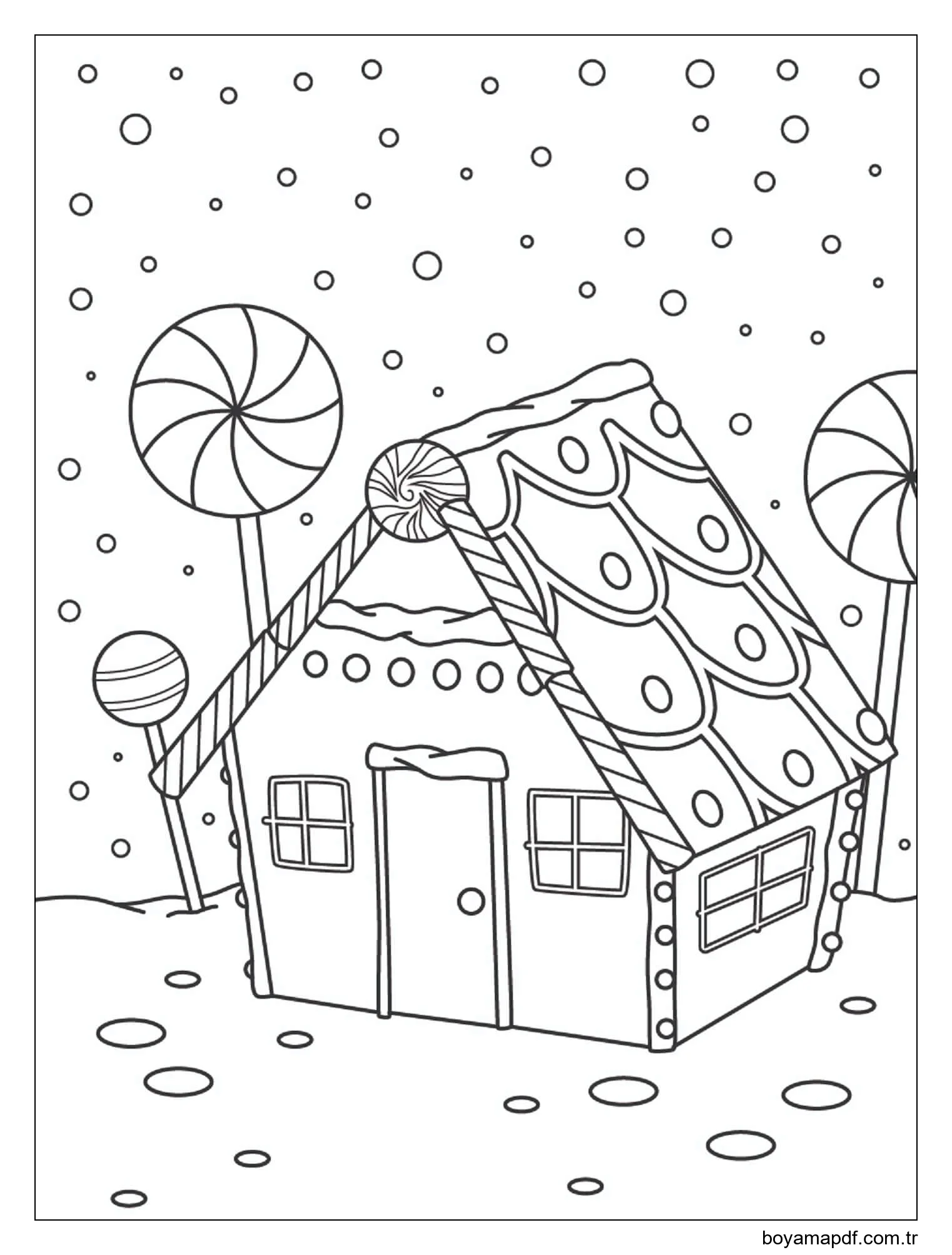 Şekerli Temel Zencefilli Kurabiye Evi Boyama Sayfası