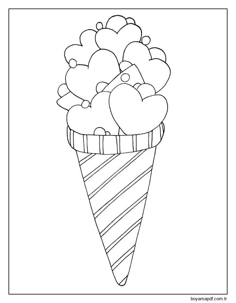 Sevgililer Günü İçin Dondurma Boyama Sayfası