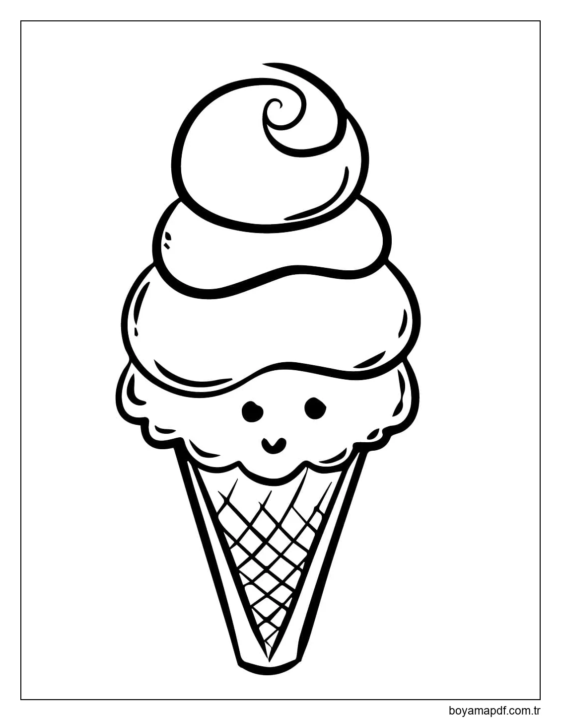 Sevimli Gülümseyen Dondurma Çiz Boyama Sayfası