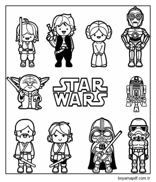 Sevimli Yıldız Savaşları Boyama Sayfası