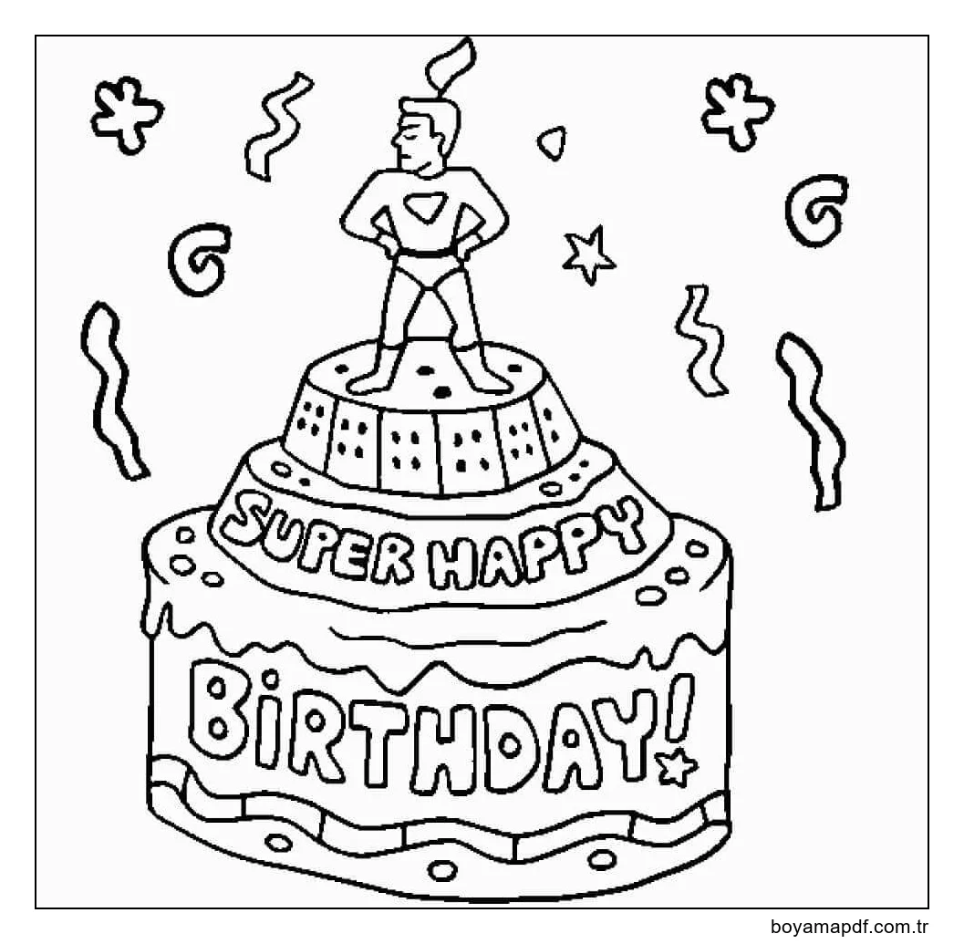 Süper Mutlu Doğum Günü Pastası Boyama Sayfası