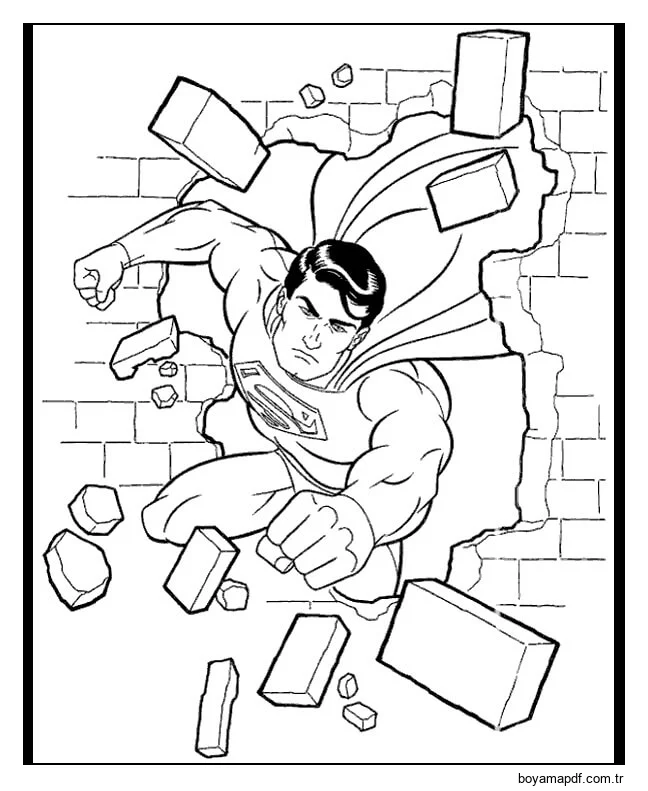 Süpermen Duvarı Yıkıyor Boyama Sayfası