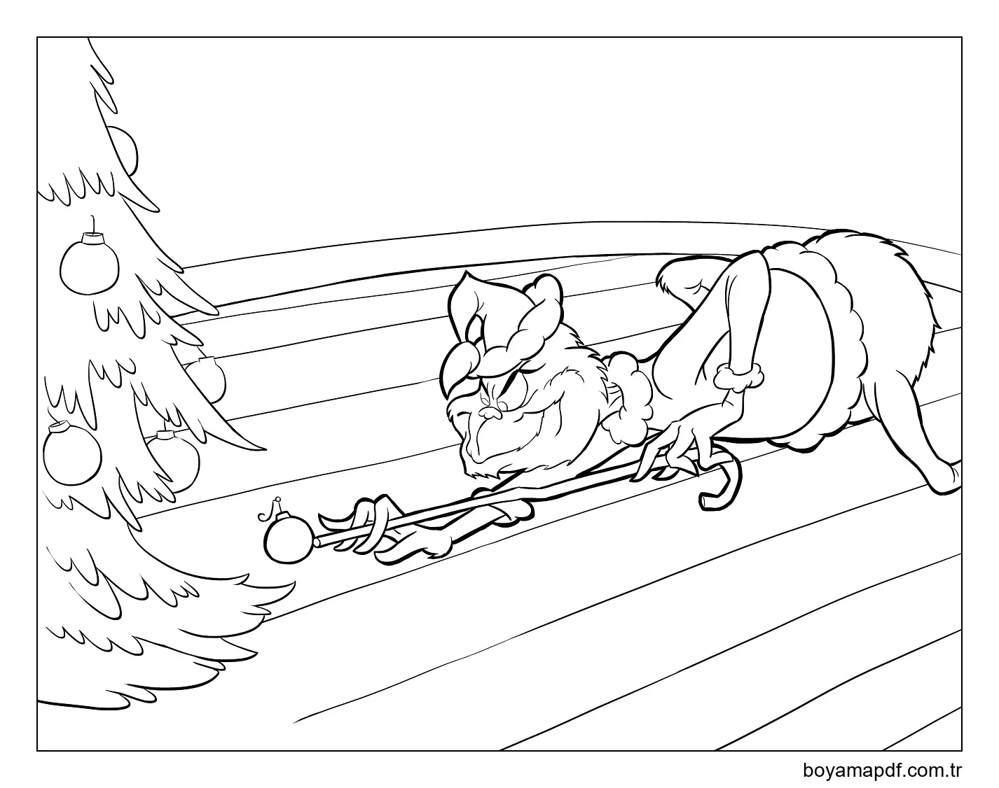 Süslemelerle Oynayan Grinch Boyama Sayfası