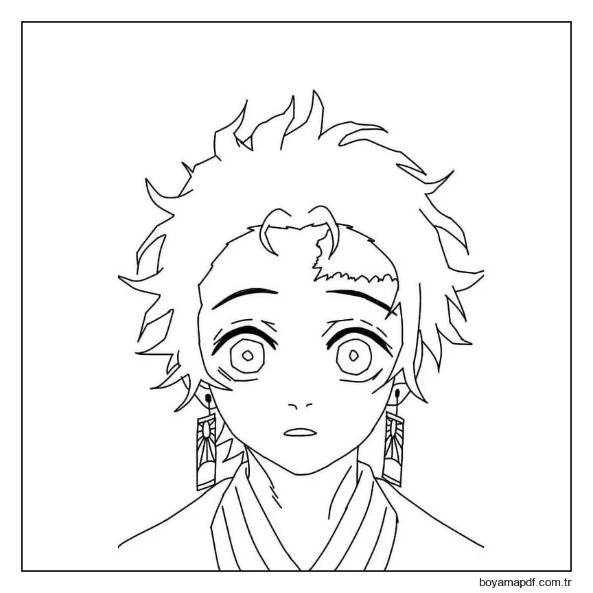 Tanjiro çocuklar için kolay Boyama Sayfası