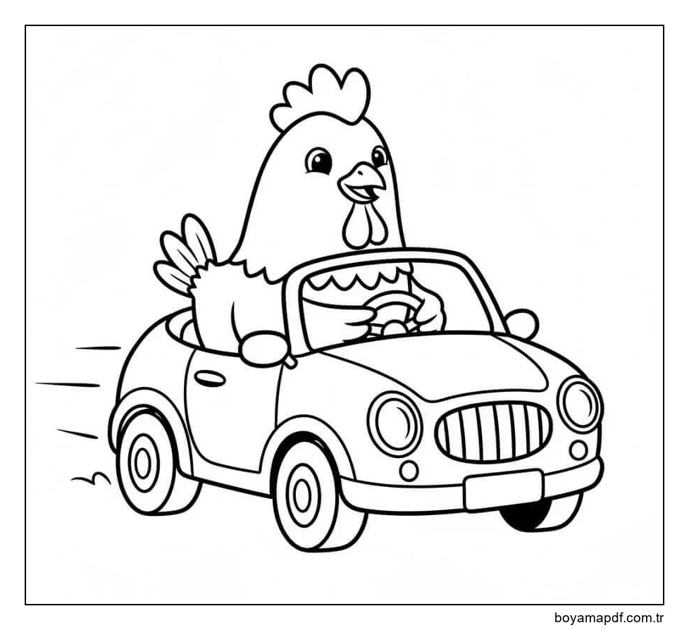 Çocukların hayal gücünü harekete geçirecek eğlenceli bir boyama sayfası arıyorsanız, bu tam size göre! Renkli bir dünyaya dalarken tavukları arabalarını sürerken hayal edin ve boyama becerilerinizi geliştirin. Kaliteli açıklama ve detaylarla dolu bu eşsiz sayfa, küçük sanatçıların ilgisini çekecek. Eğlenceli bir aktivite ile hem öğrenin hem de yaratıcılığınızı konuşturun!