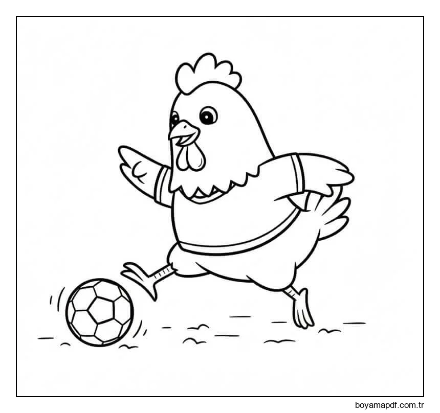 Çocuklarınızın hayal gücünü renklendirmeye ne dersiniz? Sevimli bir tavuğun futbol sahalarındaki macerasını boyarken hem eğlenecekler hem de el becerilerini geliştirecekler. Kullanıcı dostu metin yapısıyla sunulan bu boyama sayfası, miniklerin keyifli vakit geçirmesini sağlarken, ebeveynlerin de içini rahatlatacak. Şimdi keşfedip renklerin büyülü dünyasına adım atmanın tam zamanı!
