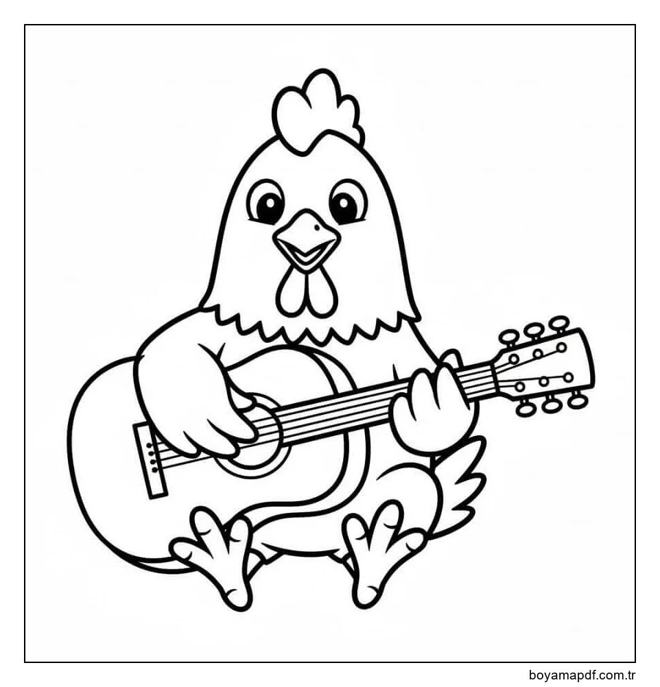 Tavuk Gitar Çalıyor Boyama Sayfası