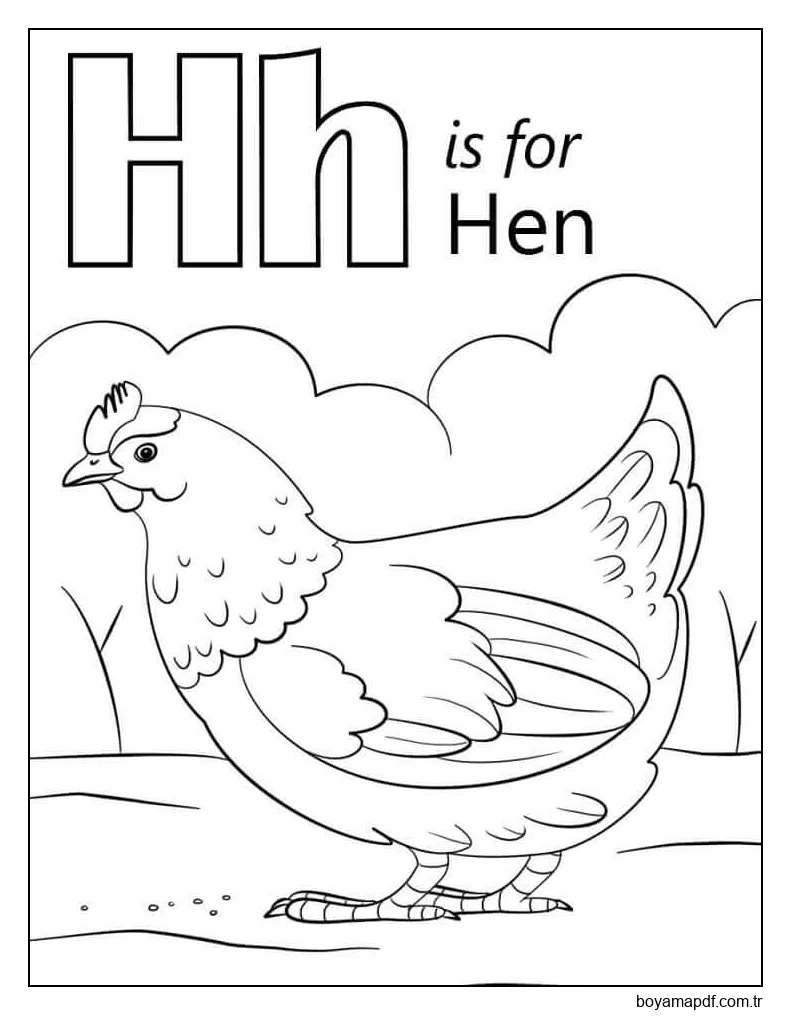 H Harfi kategorisinde bulunan Tavuk Harfi H Boyama Sayfası, 791x1016 piksel boyutunda, image/webp formatında hazırlanmış bir görseldir. İçerik 20.11.2025 tarihinde BoyamaPDF sistemine eklenmiştir.