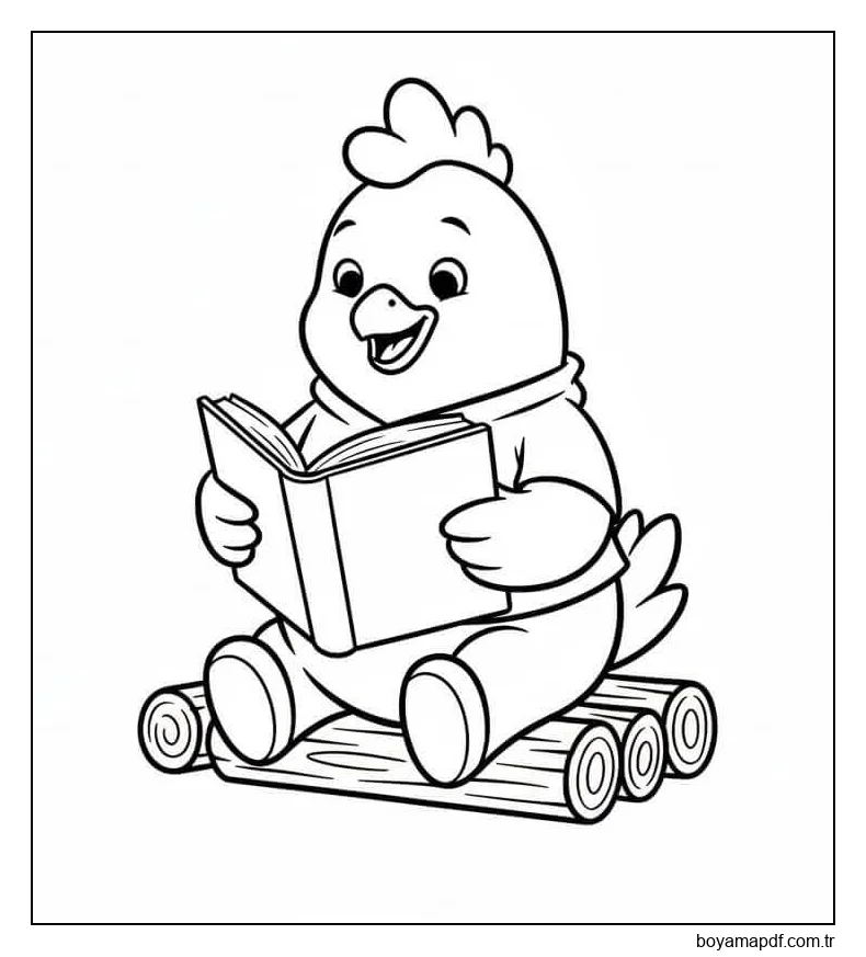 Çocukların yaratıcılığını geliştirmesi ve keyifli zaman geçirmesi için tasarlanan bu dikkat çekici boyama sayfası, bir tavuğun kitap okuduğu sevimli bir sahneyi sunuyor. Eğlenceli görselleriyle çocukların hayal gücünü harekete geçirirken, renklerle dolu bir maceraya davet ediyor. Boyama yaparken çocuklar hem eğlenecek hem de renklerin dünyasına adım atacaklar. Bu özel sayfa, miniklerin favorisi olmaya aday!