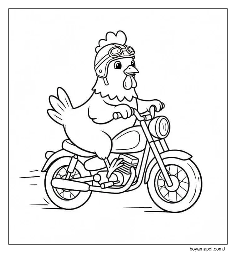 Tavuk Motosiklet Biniyor Boyama Sayfası