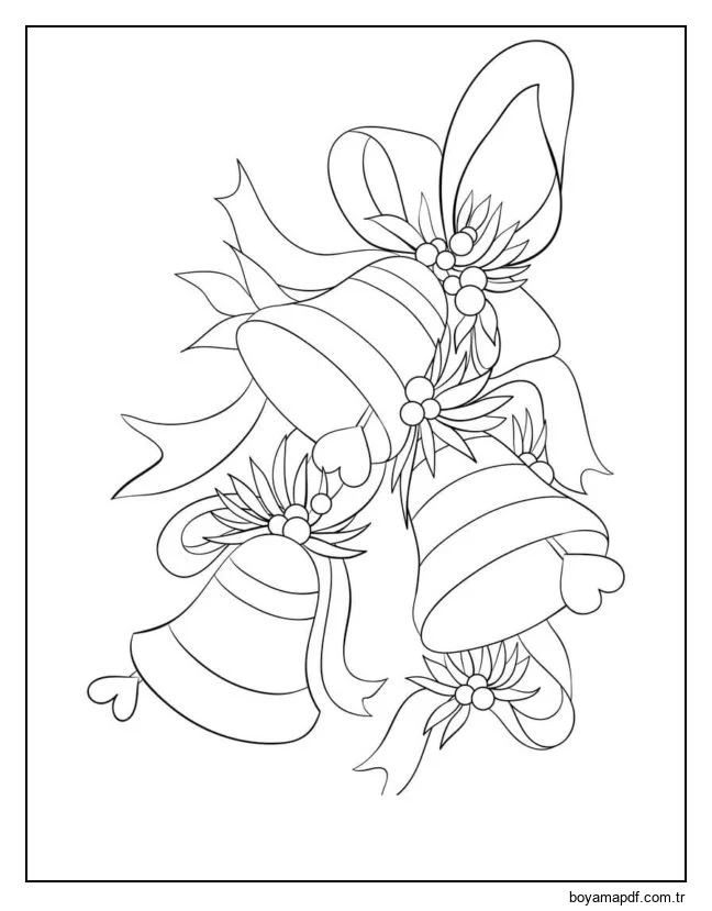 Tek bir kurdele ile bağlanmış üç çan. Boyama Sayfası