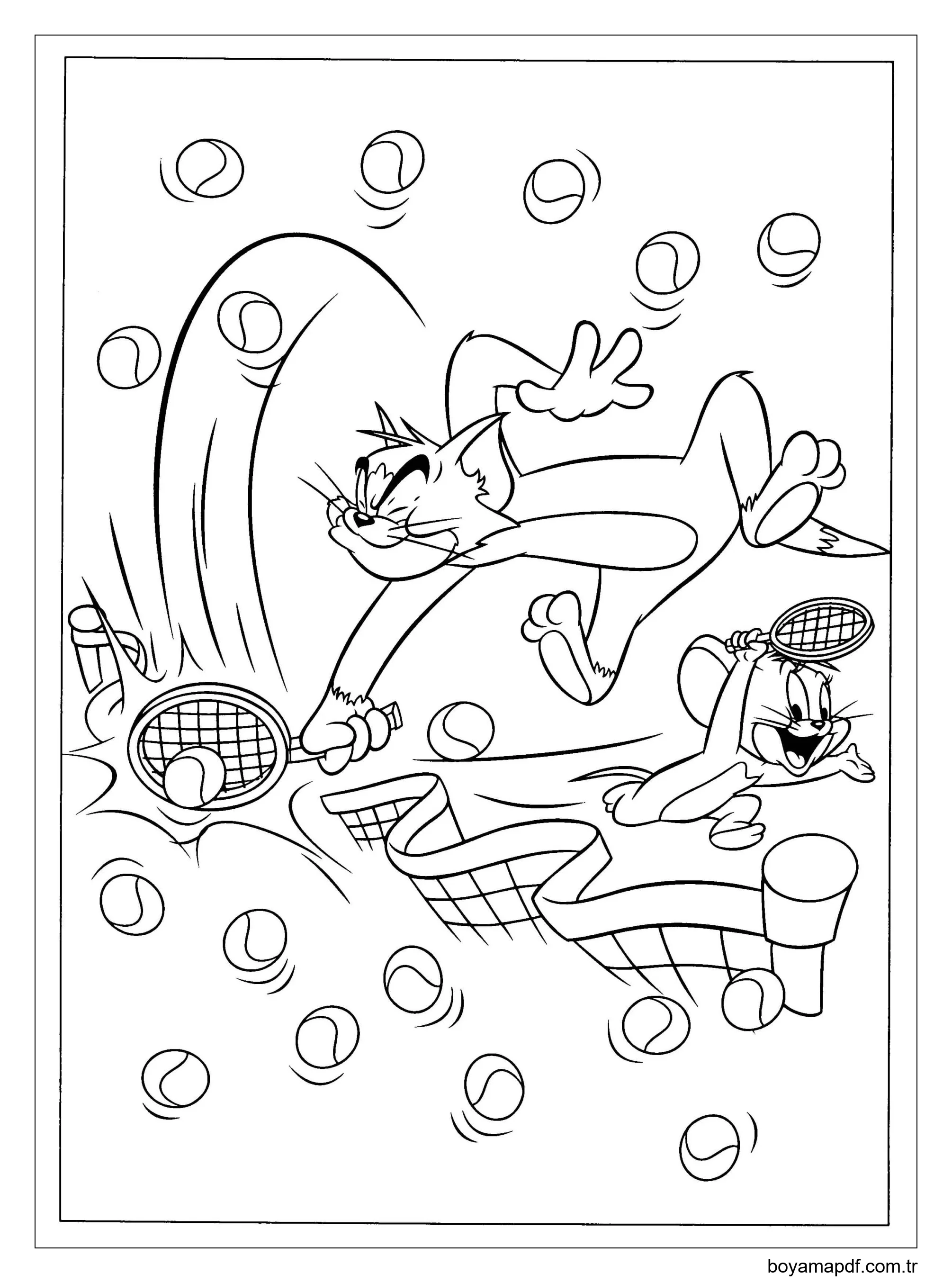 Tom ve Jerry tenis Oynuyor Boyama Sayfası