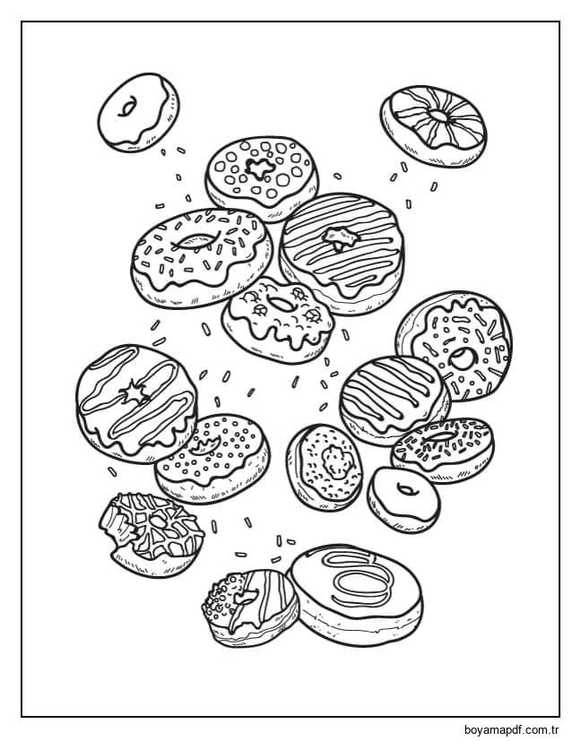 Eğlence dolu bir boyama deneyimine hazır mısınız? Rengarenk hayal gücünüzü serbest bırakabileceğiniz bu kullanıcı dostu boyama sayfası ile çocuklarınızın yaratıcılığını keşfedin. Ücretsiz olarak sunulan donutlar boyama sayfası, hem çocuklar hem de yetişkinler için keyifli vakit geçirmenin en tatlı yolu! Kaçırmayın, hemen tıklayın ve bu renkli dünyaya adım atın.