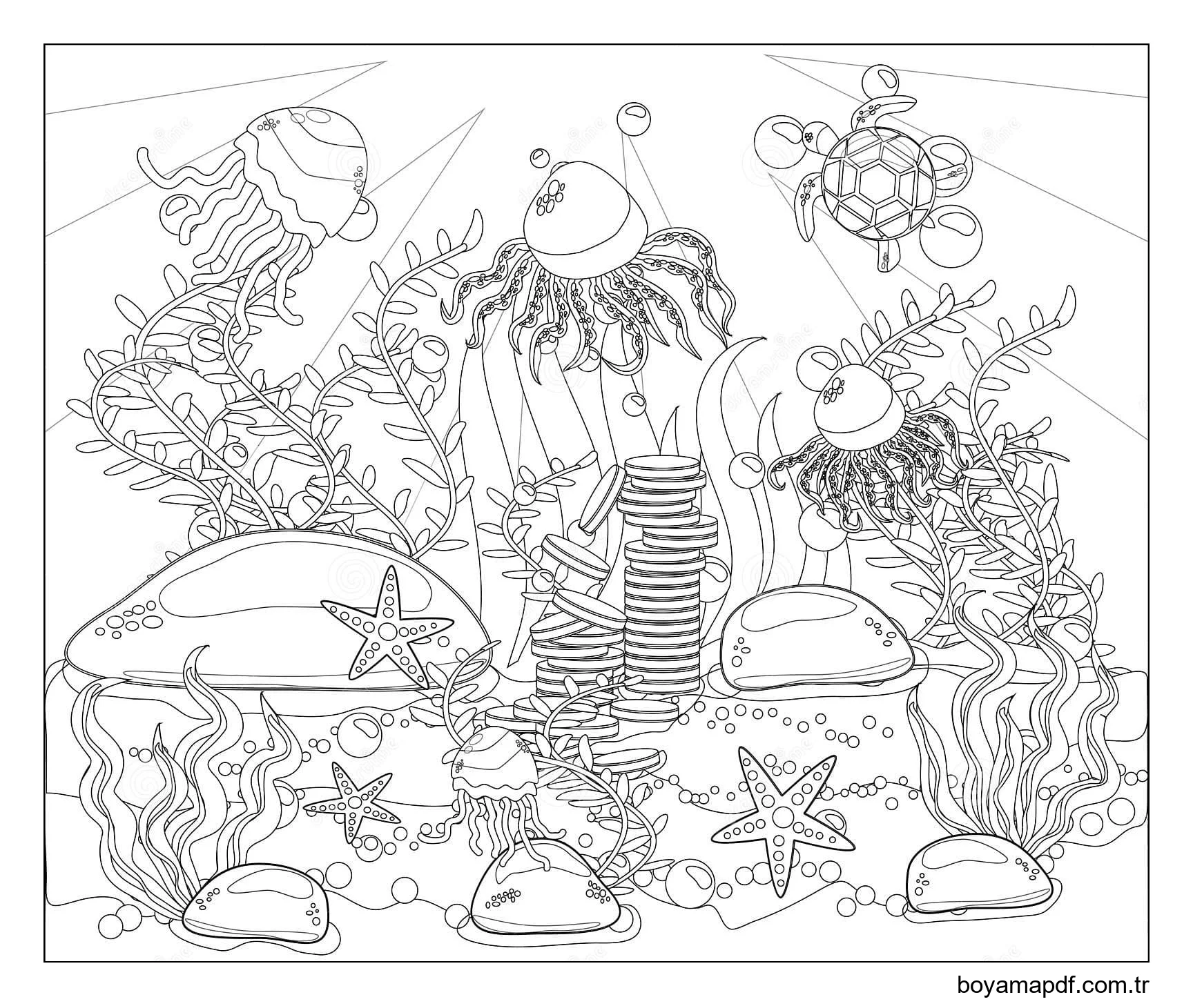 Ücretsiz Sualtı Dünyası Resim Boyama Sayfası