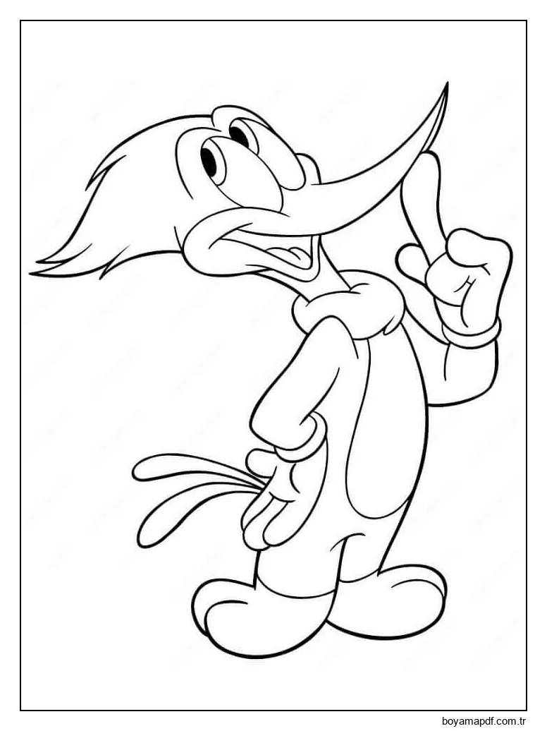 Woody Ağaçkakan Düşünme Boyama Sayfası