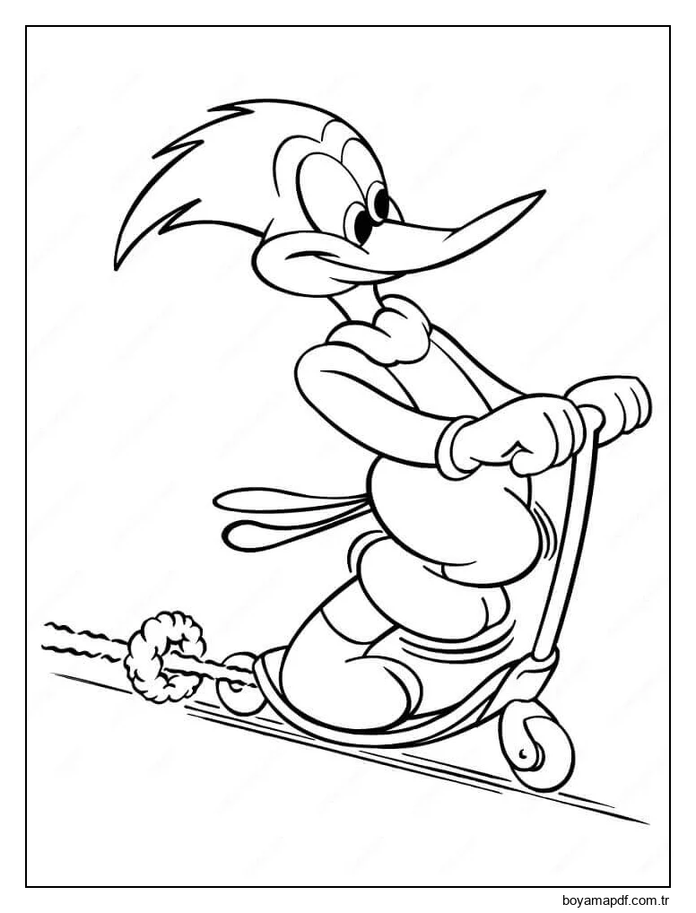 Woody Ağaçkakan Ve Bisiklet Scooter Boyama Sayfası
