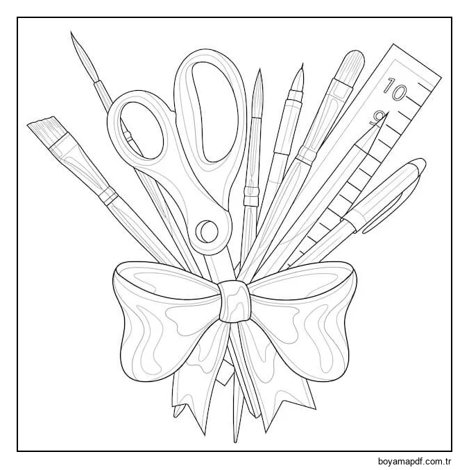 Yay ile Okul Malzemeleri Boyama Sayfası