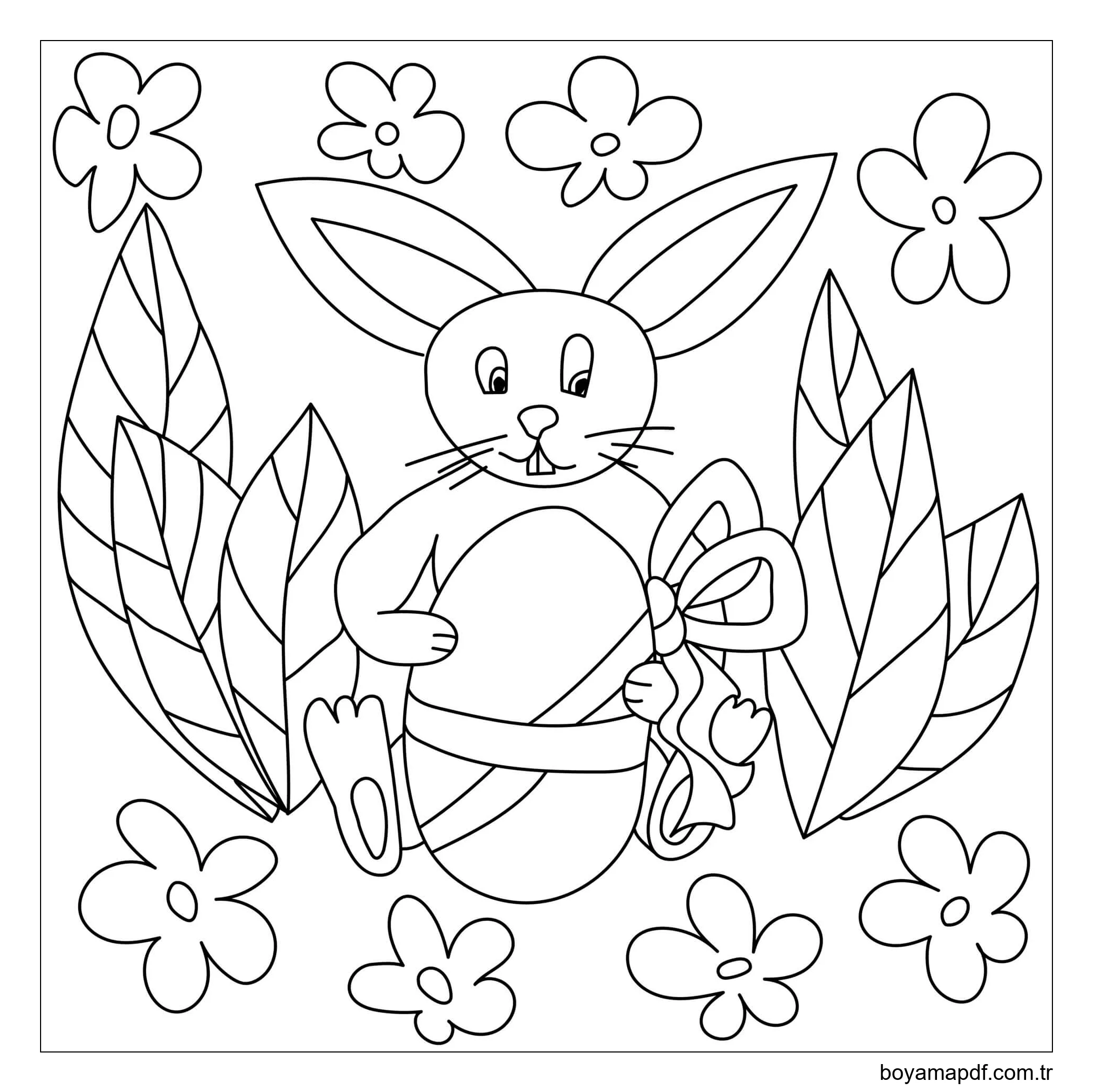 Yay ile Paskalya Yumurtası Tutan Tavşan Boyama Sayfası
