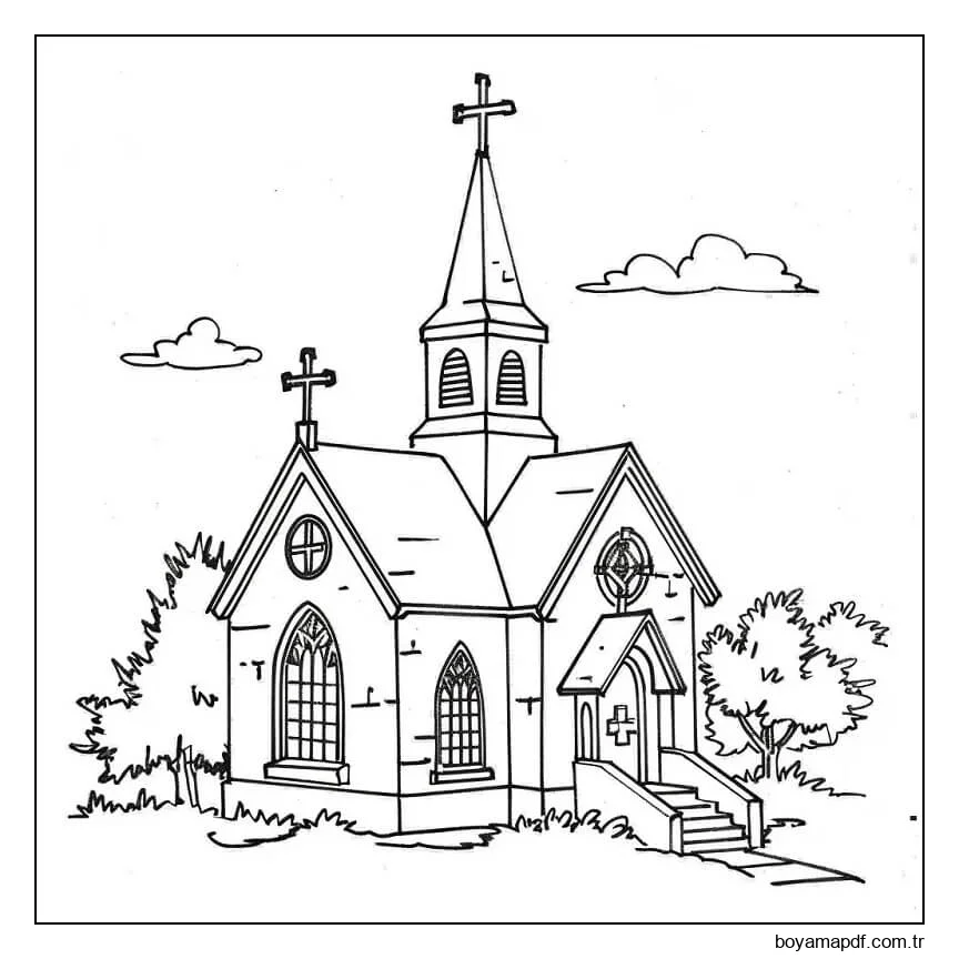 Yazdırılabilir Bedava Kilise Boyama Sayfası
