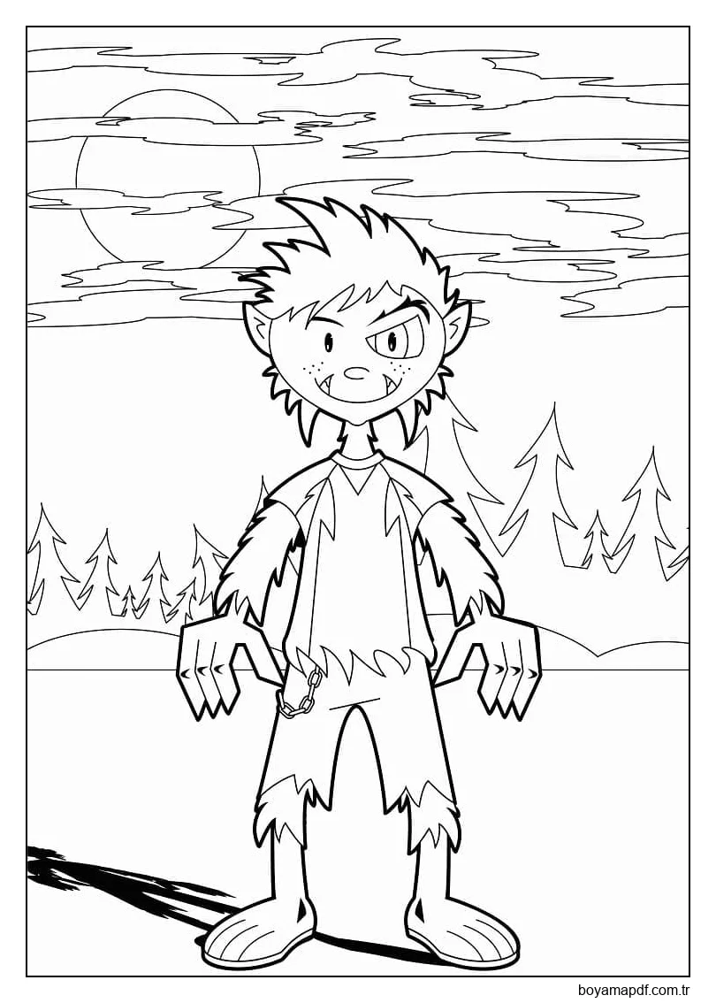 Yazdırılabilir Kurt Adam Çocuklar İçin Boyama Sayfası