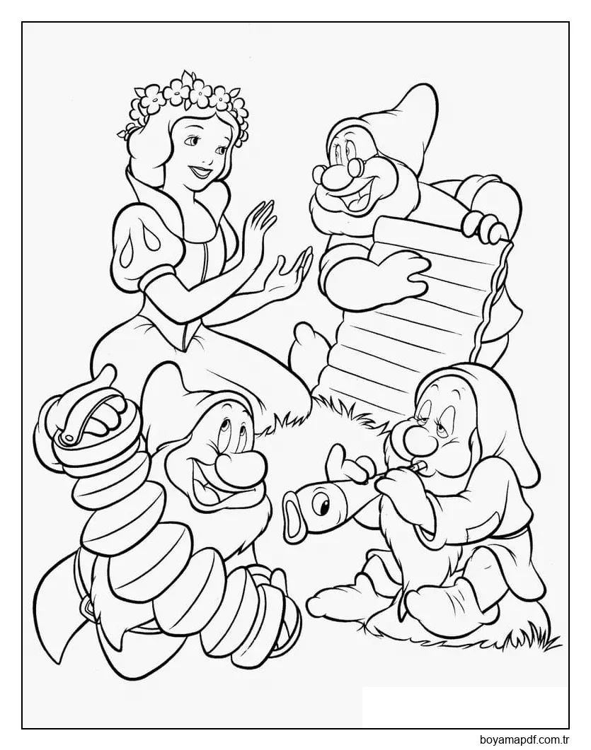 Aynı temaya sahip daha fazla boyama sayfasını görüntülemek için yan alandaki önerileri veya Pamuk Prenses kategorisini inceleyebilirsiniz.