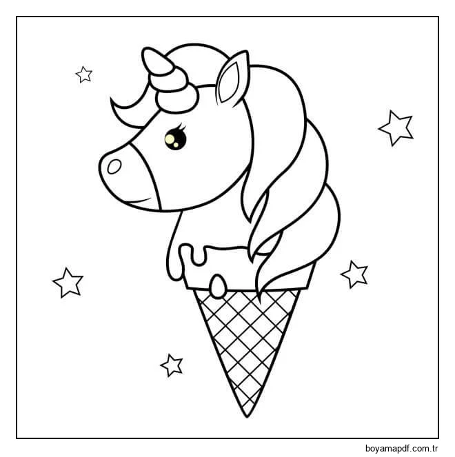 Yıldızlı tek Boynuzlu at Dondurması Boyama Sayfası